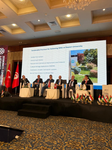 During the conference, our Rector Prof. Dr. Kurtuluş KARAMUSTAFA took part as a speaker in the 4th Panel, themed “Green Universities and Sustainability Leadership”, where he delivered a presentation titled “Campus Strategies for Energy, Mobility, Food, and Waste.” In his speech, he presented examples of the sustainability initiatives implemented and planned at Kayseri University.