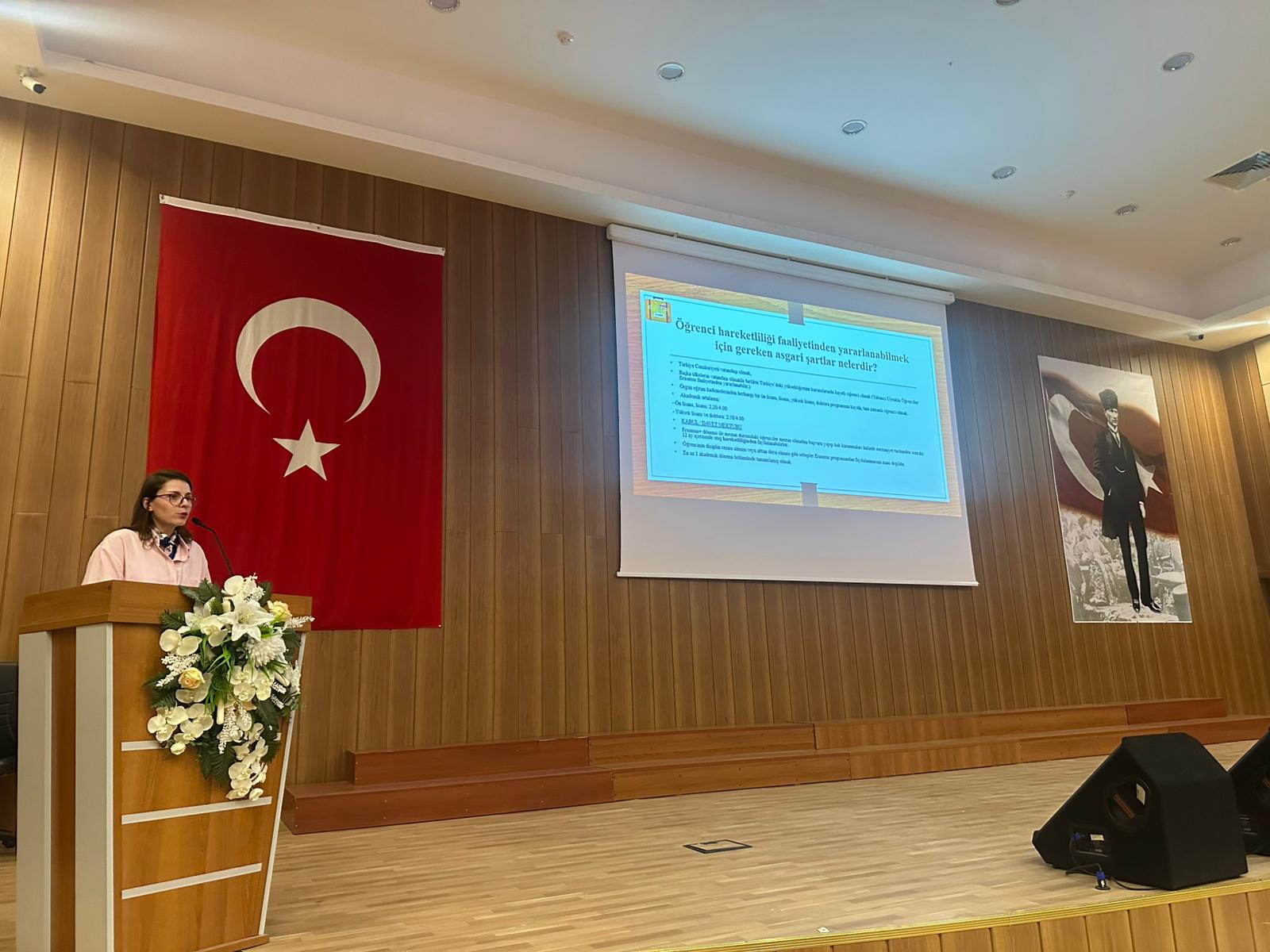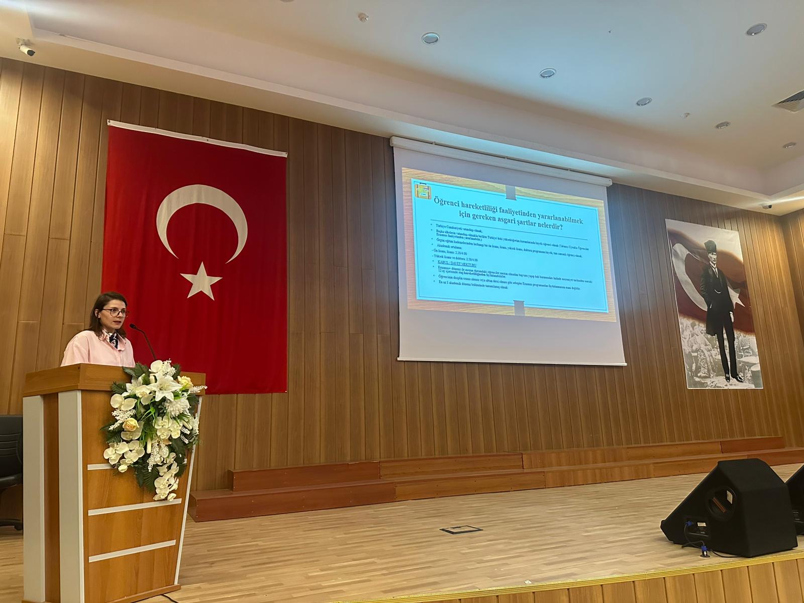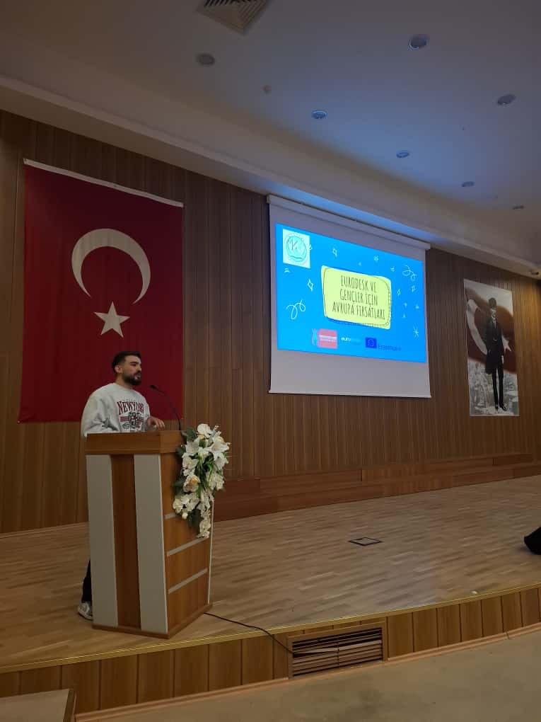 The Erasmus+ Student Information Meeting and Eurodesk Turkey Contact Point Introduction were held at Kayseri University Develi M. Hidayet Tutum Congress and Culture Center on Monday, October 13, 2025, at 2:00 p.m. The event featured presentations by Erasmus Specialist Lecturer Gözde ÇULFACI from the Directorate of International Relations Office and Eurodesk Turkey Contact Point Representative Lecturer Mehmet KÖYLÜOĞLU, with the participation of students from Develi Faculty of Social and Human Sciences, Develi Faculty of Theology, and Develi Hüseyin Şahin Vocational School.
