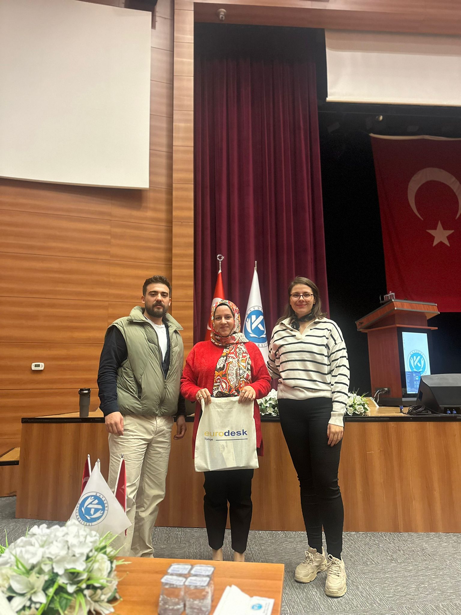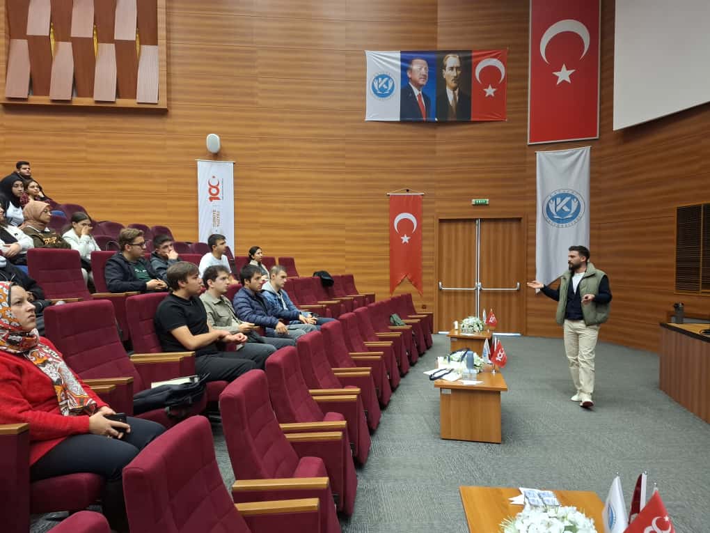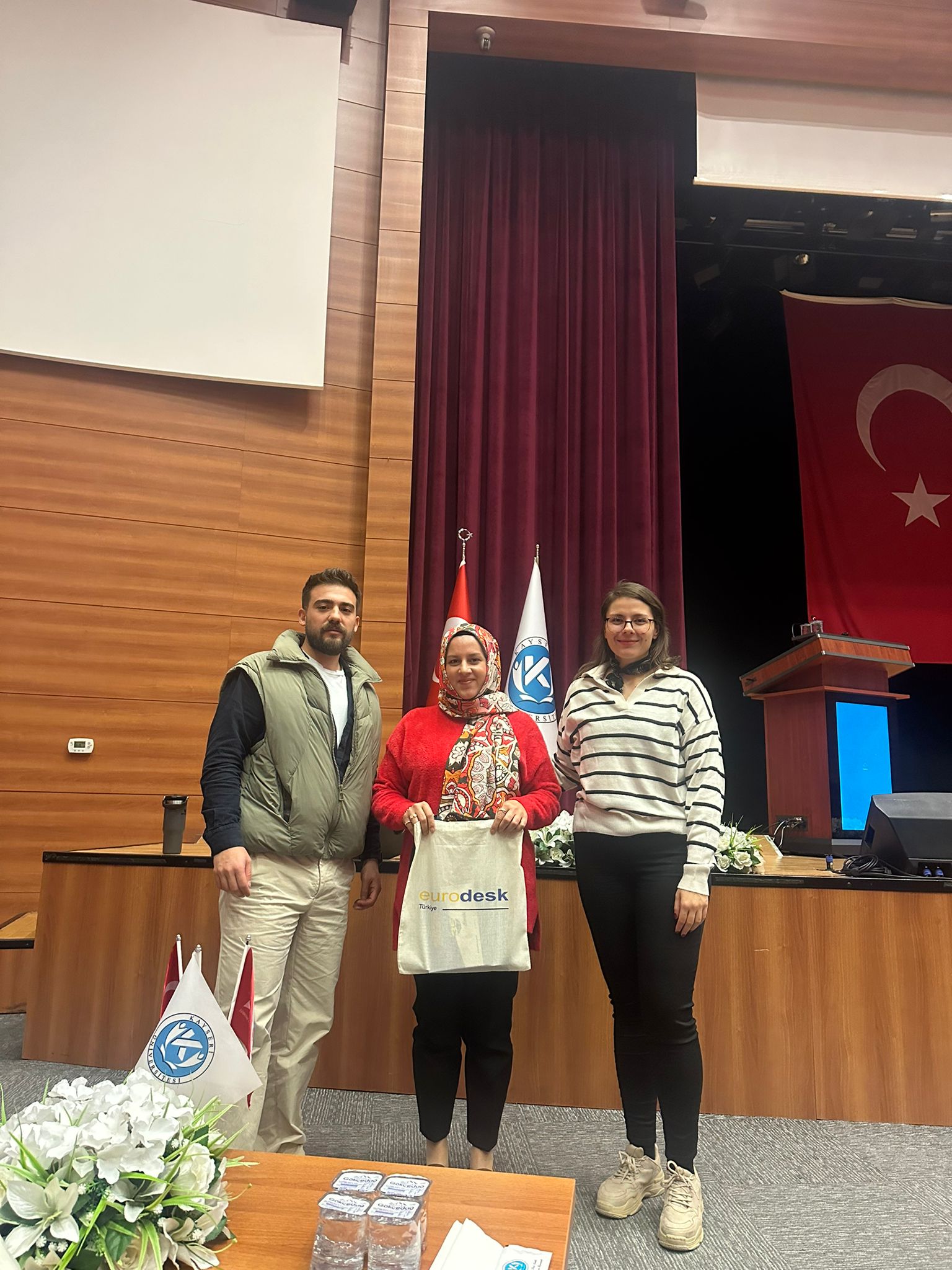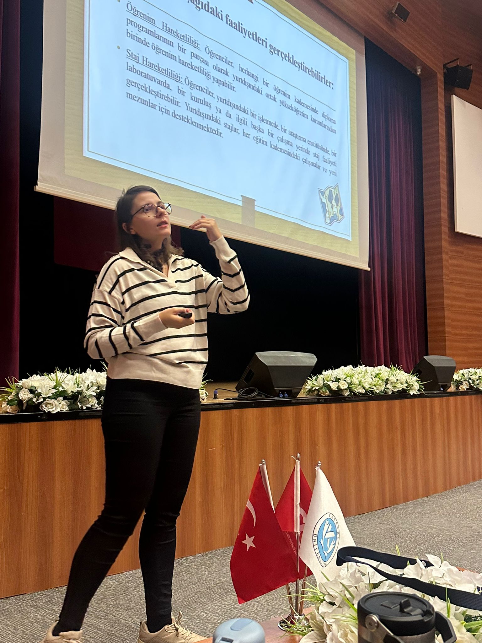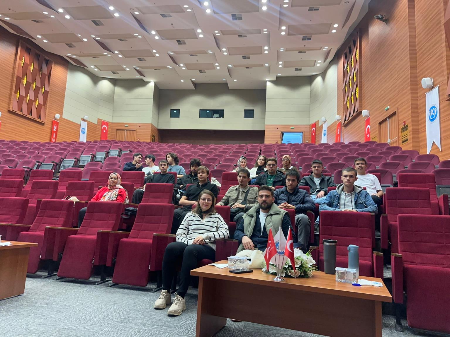 The Erasmus+ Student Information Meeting and Eurodesk Türkiye Contact Point Introduction took place on Friday, October 17, 2025, at 11:00 a.m. at Kayseri University’s 15 July Campus Congress and Culture Center, with the participation of students from the Vocational School of Information Technologies, Vocational School of Technical Sciences, and the Graduate Education Institute.