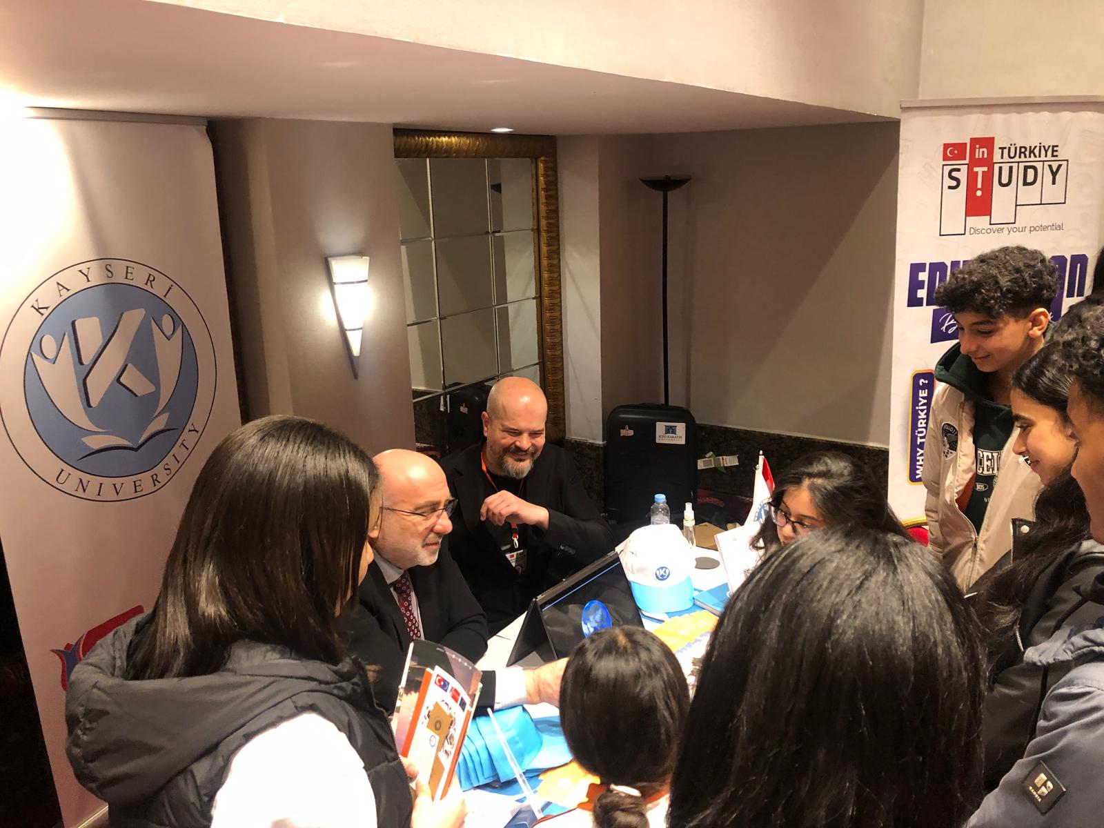 At the Kayseri University stand, detailed information was provided about the university’s academic programs, educational facilities, and the special support services offered to international students.