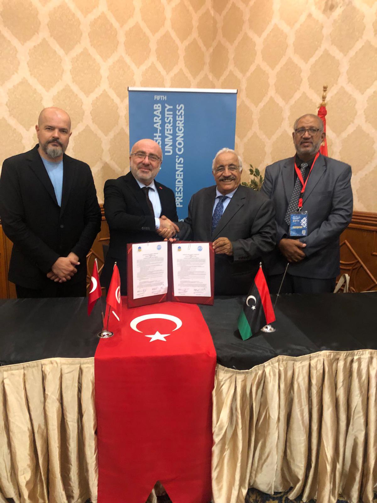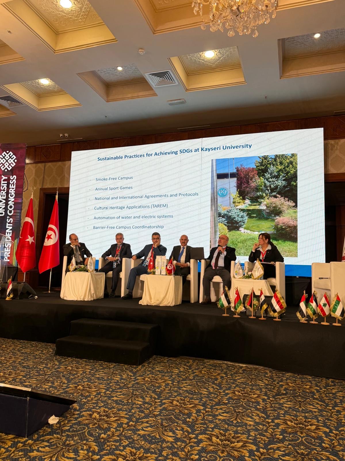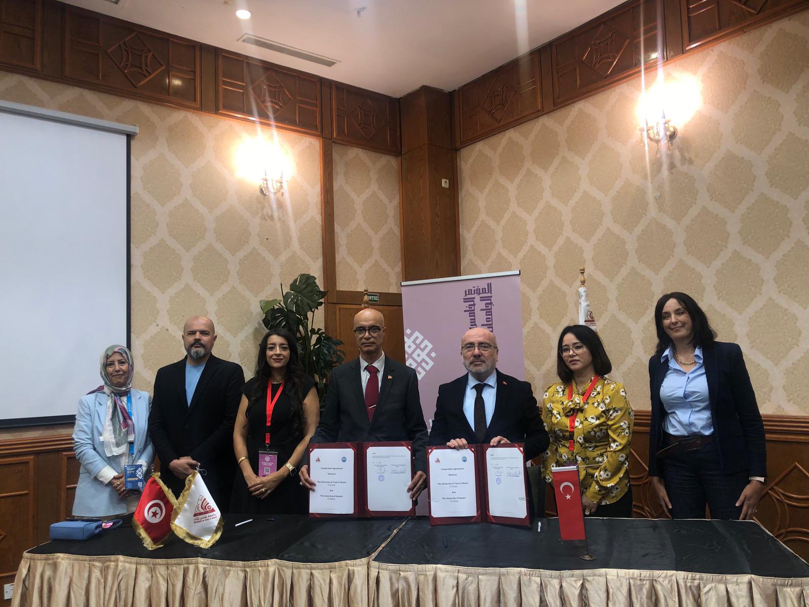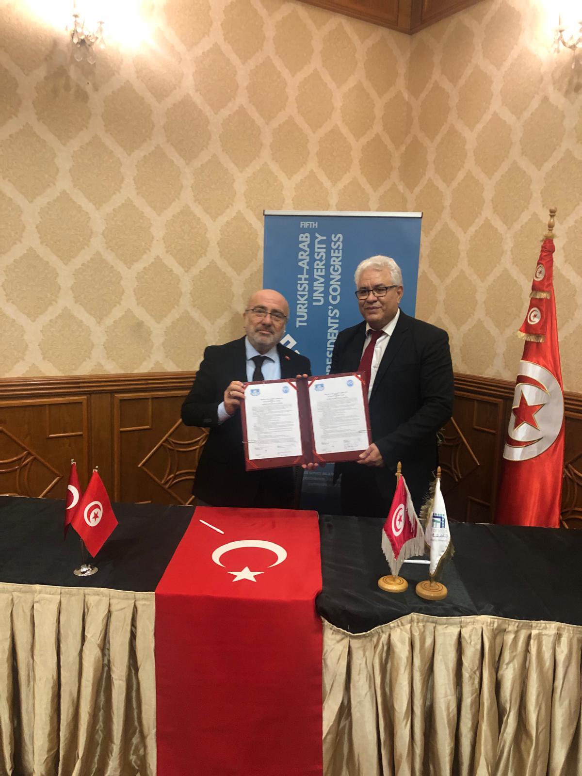 Tunus El Menar Üniversitesinde; "Liderlik, İnovasyon ve Bölgesel Entegrasyon Yoluyla Yükseköğretimin Dönüşümü“ teması ile Yükseköğretim Kurulu Başkanı Sayın Prof. Dr. Erol ÖZVAR’ın teşrifleriyle gerçekleştirilen "5. Türk–Arap Üniversite Rektörleri Kongresi“nde Sayın Rektörümüz Prof. Dr. Kurtuluş KARAMUSTAFA "Green Universities and Sustainability Leadership“ ana temalı 4. Panelde "Campus Strategies for Energy, Mobility, Food and Waste“ konulu konuşmasını gerçekleştirerek Üniversitemizde yaptıklarımızı, planladıklarımızı örnekler olarak sunmuştur. Kongre akabinde Arap Üniversiteleri ile Üniversitemiz arasında iş birliği protokolleri imzalanmıştır.