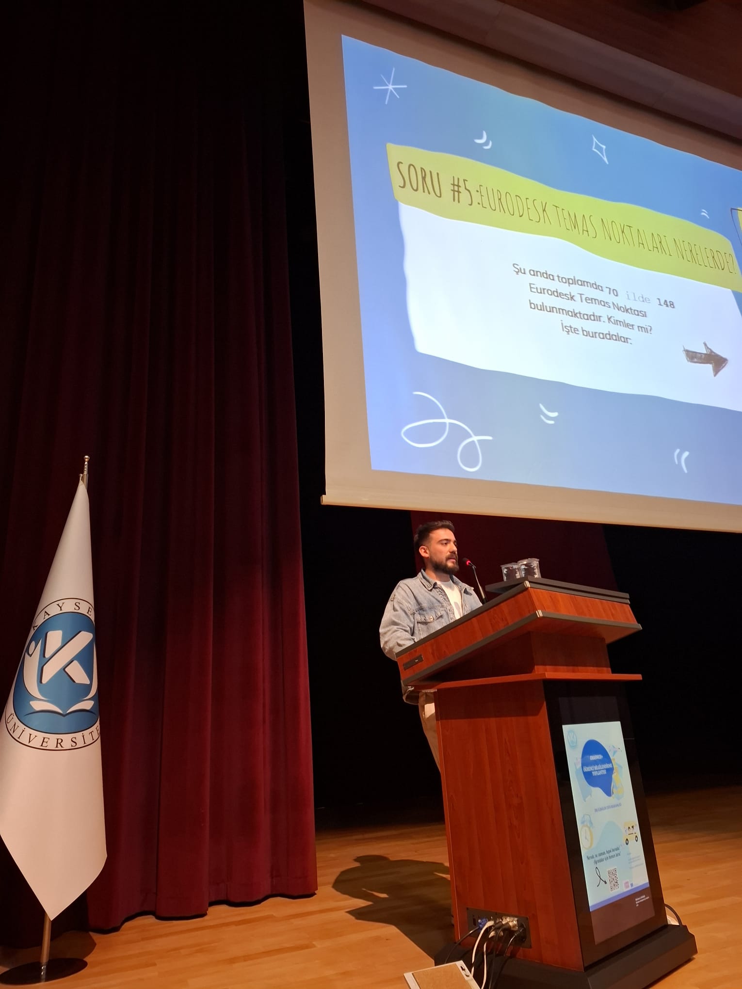 Erasmus+ Öğrenci Bilgilendirme Toplantısı ve Eurodesk Türkiye Temas Noktası Tanıtımı, Dış İlişkiler Ofis Başkanlığı Erasmus Uzmanı Öğr. Gör. Gözde ÇULFACI ve Eurodesk Türkiye Temas Noktası Temsilcisi Öğr. Gör. Mehmet KÖYLÜOĞLU'nun sunumları ve Safiye Çıkrıkçıoğlu Meslek Yüksekokulu, Sosyal Bilimler Meslek Yüksekokulu, Sağlık Bilimleri Fakültesi ve Bilgisayar ve Bilişim Bilimleri Fakültesi öğrencilerinin katılımıyla 16 Ekim 2025 Perşembe günü saat 14.30'da Kayseri Üniversitesi 15 Temmuz Yerleşkesi Kongre ve Kültür Merkezinde gerçekleştirilmiştir. Toplantıda, Erasmus+ öğrenci değişim programına katılmak isteyen öğrencilerimize süreç hakkında detaylı bilgiler verilerek soruları yanıtlanmış ve Eurodesk hakkında bilgilendirme yapılmıştır.📝💬
